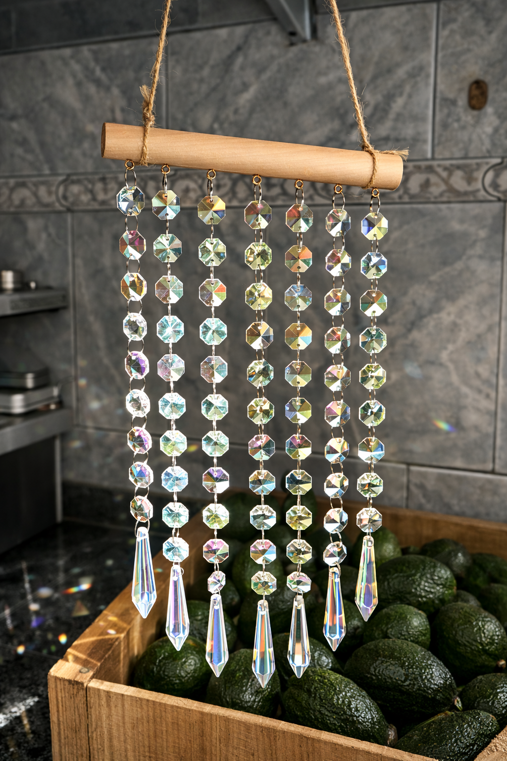 Descubrí el encanto único de nuestro Colgante atrapasol con cortina de cristales, un accesorio que transforma cualquier espacio con su brillo y color. Diseñado para colgar en ventanas o balcones, captura la luz natural y la refracta en destellos luminosos que llenan tu hogar de energía positiva y armonía. Ideal para quienes buscan combinar estilo y buena vibra en cada rincón.