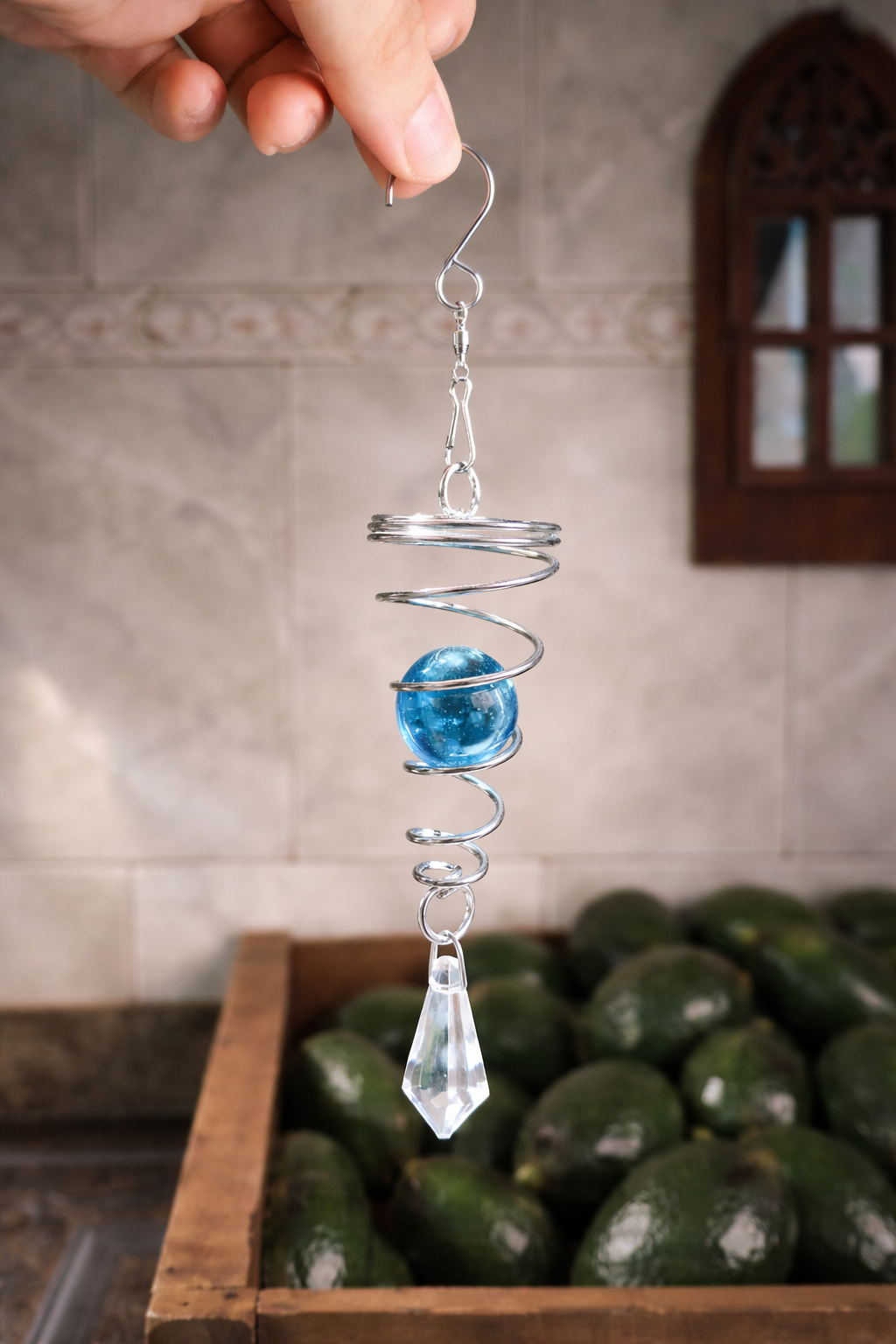 Descubre la elegancia y el movimiento en tu espacio con nuestro Móvil espiral con esfera y colgante de 15cm. Al girar suavemente, crea un efecto hipnótico que llena cualquier ambiente de armonía y serenidad. Ideal para balcones, jardines o interiores, este móvil es un detalle único que aporta calma y belleza a tu hogar.